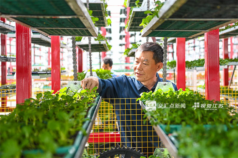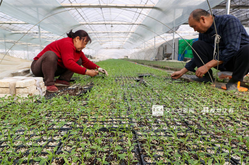 3月25日 宿迁农技人员正在宿豫区关庙区域性农业综合服务中心查看蔬菜苗长势。近年来,宿豫区以数字技术为引擎,不断推动传统农业向生态循环农业、数字农业转型升级。陈少帅 摄