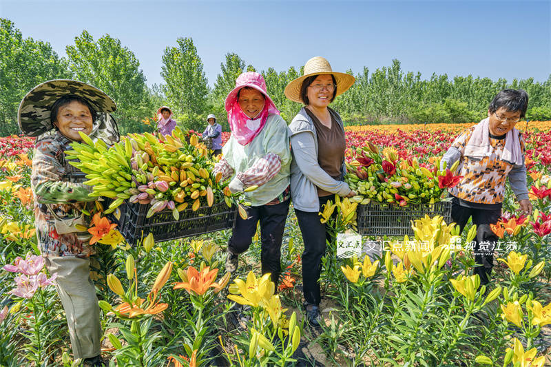 6月6日 南京村民正在溧水区石湫街道焦赞石村百合花种植基地采收食用百合花。近年来,焦赞石村大力发展“花经济”,种植多种百合花,除加工食用、销往市场外,还吸引大批游客前来观赏。朱红生 摄