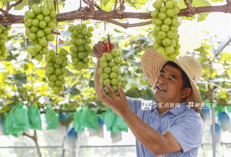 8月7日 镇江句容市白兔镇张峰良品家庭农场的葡萄相继成熟,果农忙着采摘、包装,供应市场。钟学满 摄