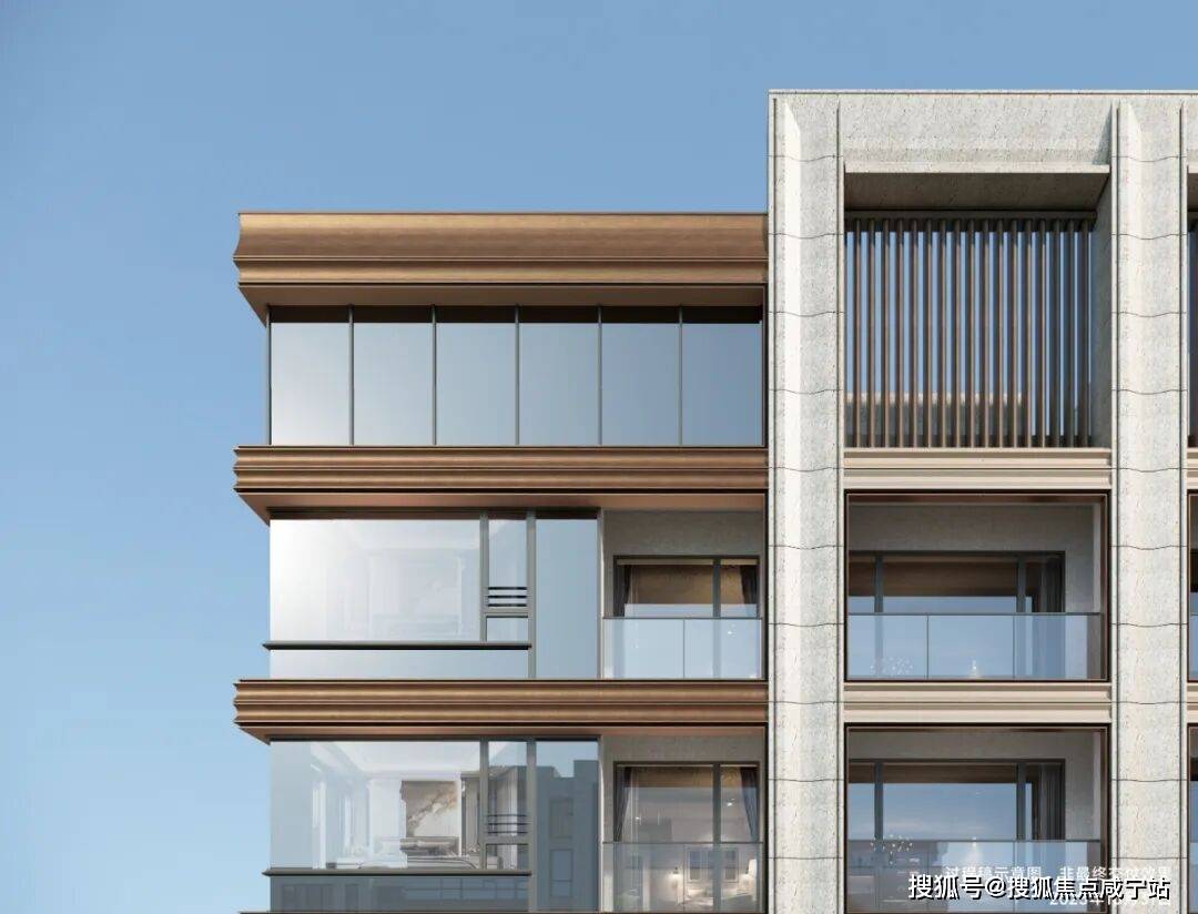 中海环宇玖章可视面都是古铜色金属铝板、米黄色铝板/石材、边套270°大转角飘窗,且从正面、侧面到背面,立面都保持精致统一,四面平权尽显高端质感。