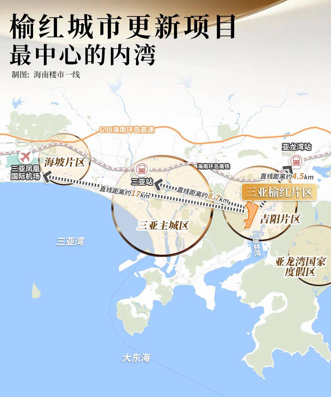 榆林湾,三亚唯一城市山海内湾,既坐拥滨海资源,又紧邻主城生活圈,避免了远郊湾区的配套缺失与传统旅游湾区的喧嚣。