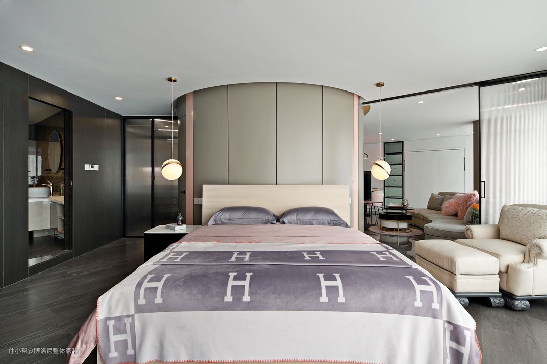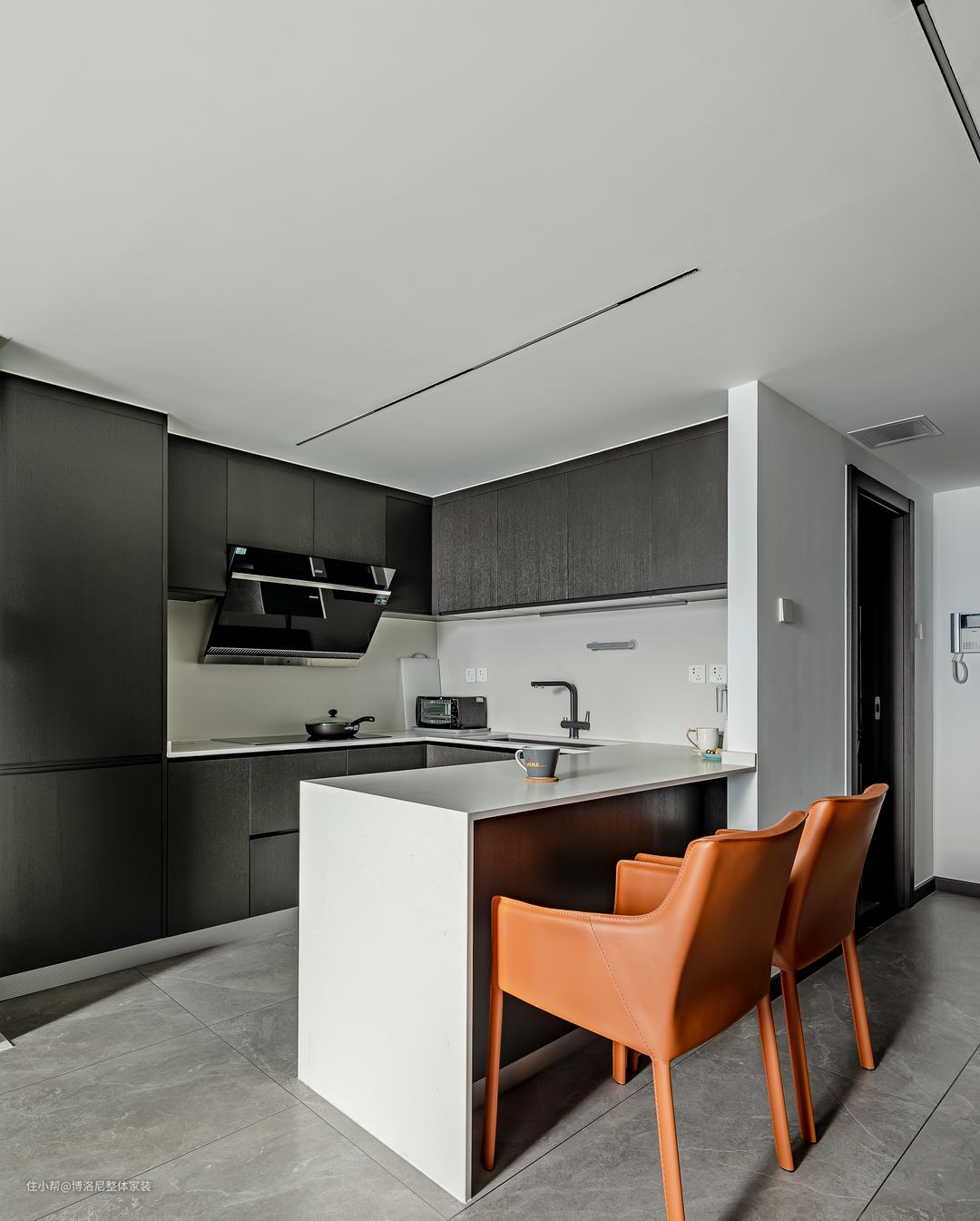 可以根据房间的整体布局,把客厅与卧室相连的原有墙体拆除,当然也可以将餐厨区与起居室以折叠门隔开,反正只要视觉上具有整体的通透性即可。这样使原平面空间不足的餐厅得到明显改善,同时厨房和餐厅区域的扩大,也丰富了起居室的空间。