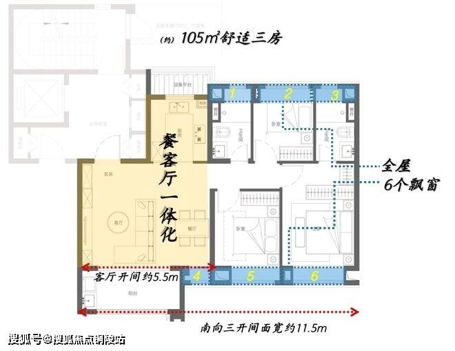 优越的窗墙比,可以最大限度将优美的景观纳入眼帘;南向三开间面宽更是达到了约11.5米,可以说市场同户型面积段产品很难做到这样极致化;功能房间以舒适度为导向服务生活,尺度均做到了当下主流产品水平之上;并且全屋附赠6处飘窗,高附加值令人心动。