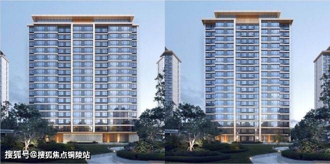 现代风格:立面利用大面积玻璃+阳台落地窗+金属型材+层间装饰提升建筑整体感和精致度,外立面大面采用浅色仿石多彩漆,浅灰色金属格栅,浅灰色玻璃,香槟色金属型材收边形成创造出建筑独有的人与自然、动静结合、丰富美观的轻盈质感,彰显住宅品质