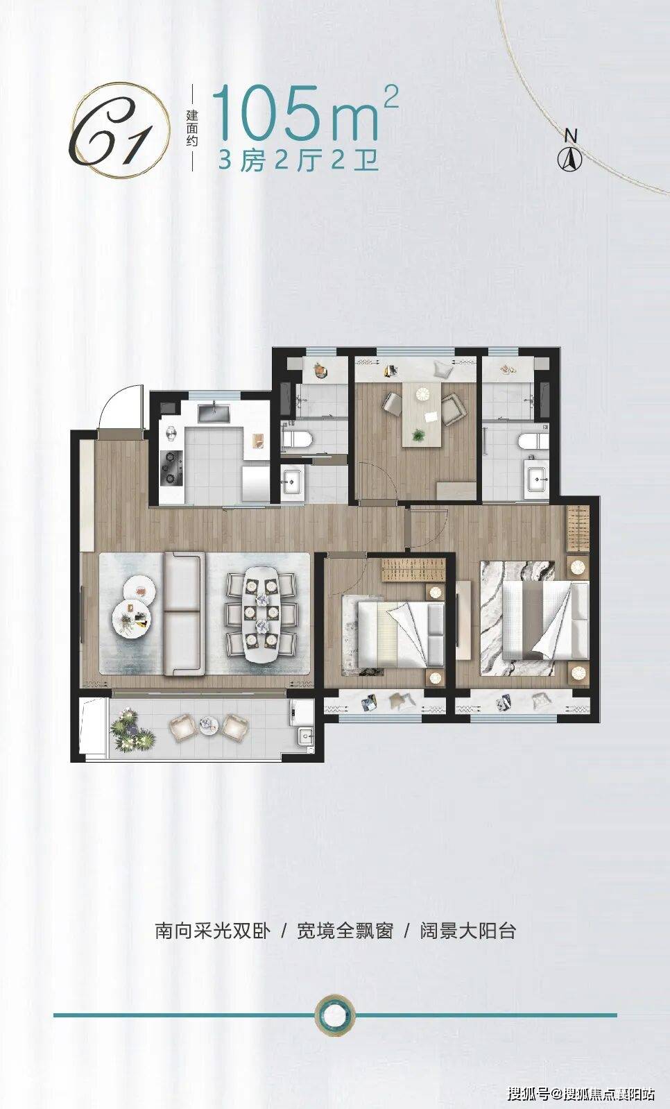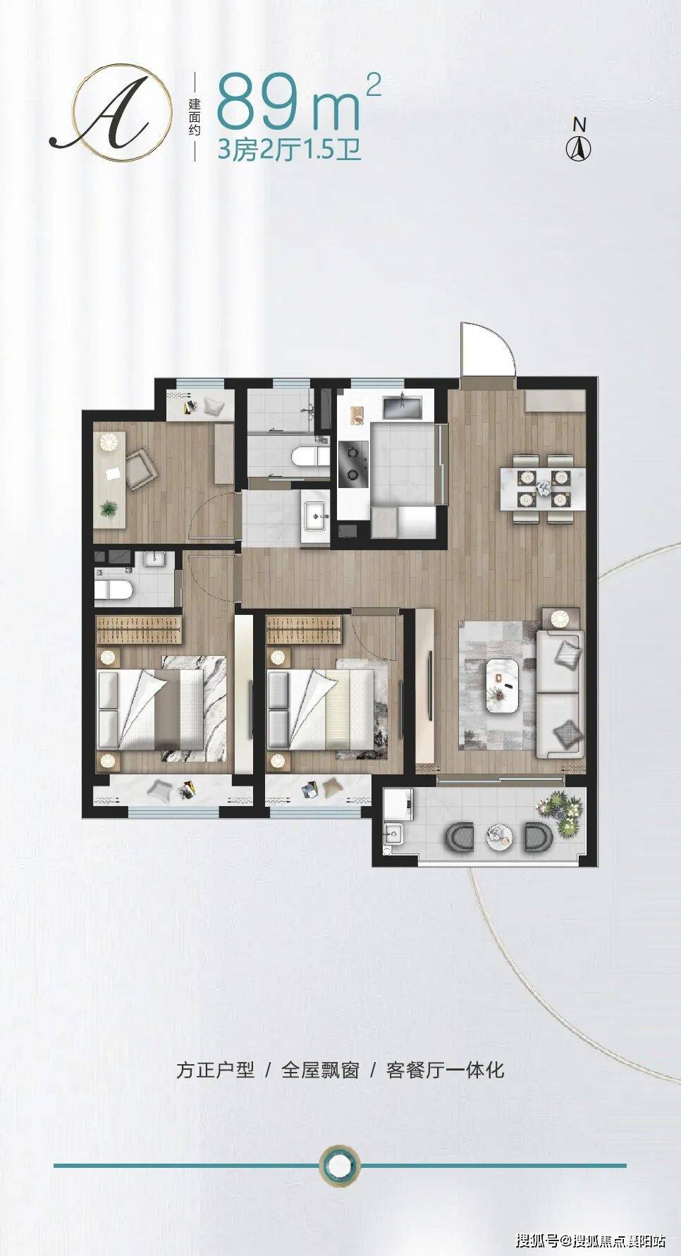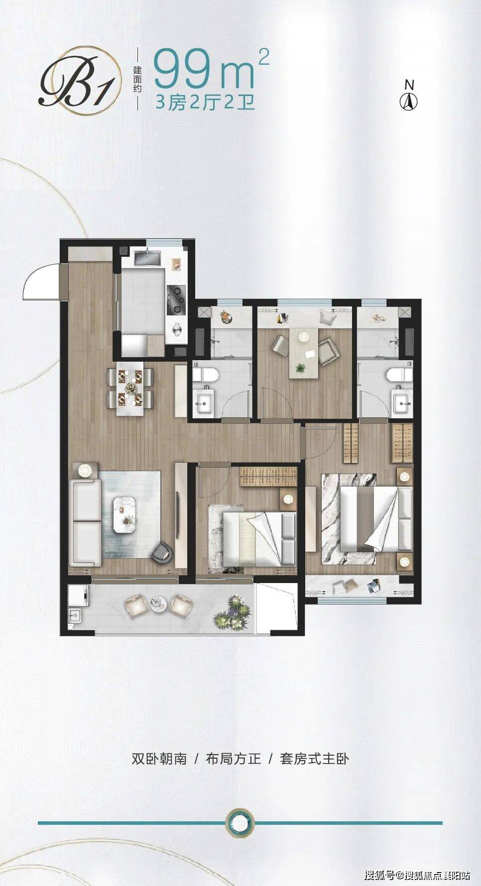 ,媲美洋房;主卧多做了0.5卫;全屋飘窗设计,客餐厅一体化,向阳而生;南次卧面积超过了10平米,北次卧开间在2.8米以上,使用面积也达到了7㎡以上,都具有真正的卧房功能。